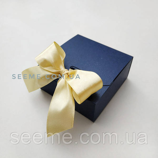 Коробка подарункова 80х80х35 мм. Колір колір темно-синій. У комплекті поставляється атласна стрічка.
