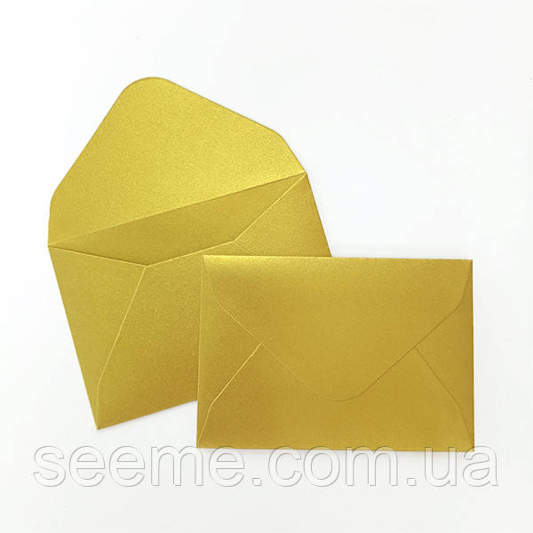Конверт з матового дизайнерського паперу, розмір 93х64 мм, колір золотий. КОМПЛЕКТ 10 ШТ.
