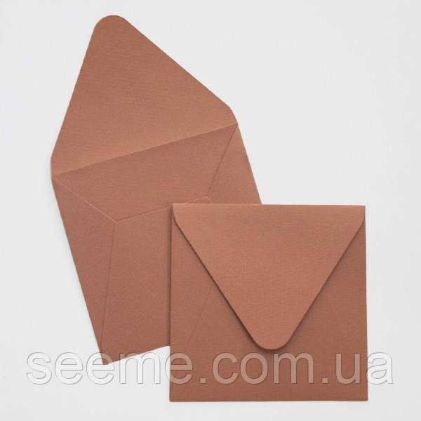 Конверт з матового дизайнерського паперу, розмір 140x140 мм, колір теракота. Папір фактурний. КОМПЛЕКТ 10 шт.